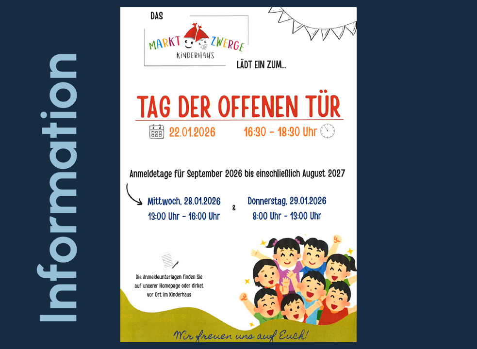 Das Kinderhaus Marktzwerge lädt zum Tag der offenen Tür am 22.01.2026 von 16.30 – 18.30 Uhr ein.