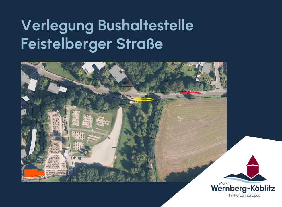 Im Zuge der Erschließungsarbeiten des Baugebietes „Am Köblitzbach“ kommt es nach den Osterferien bis voraussichtlich zum Ende des Schuljahres Juli 2026 an der Bushaltestelle Wernberg-Köblitz „Feistelberger Straße“ zu höher frequentiertem Baustellenverkehr.